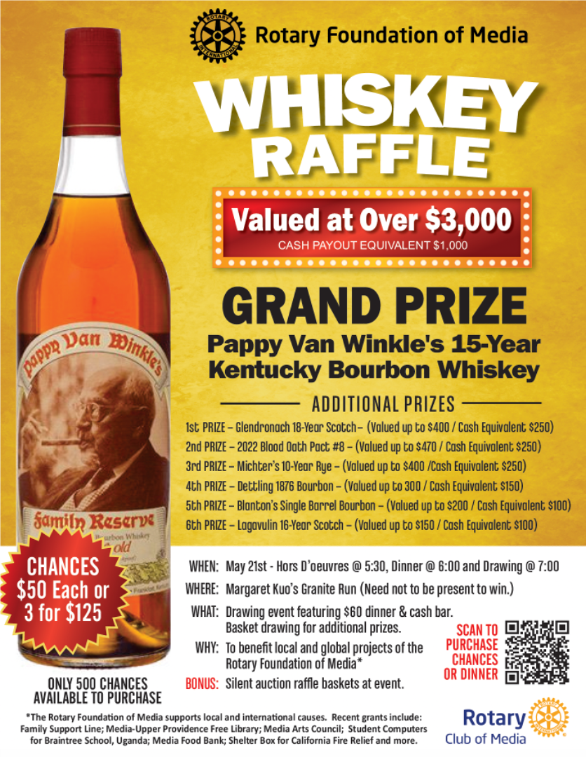 To purchase raffle chances or dinner tickets visit: www.mediarotary.org.